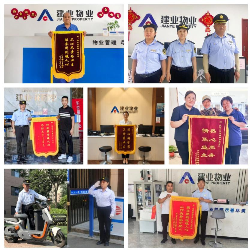 6月份,建業(yè)物業(yè)在管園區(qū)涌現(xiàn)出好人好事969件,其中收到錦旗287面、感謝信104封,其他致電表揚等578次。