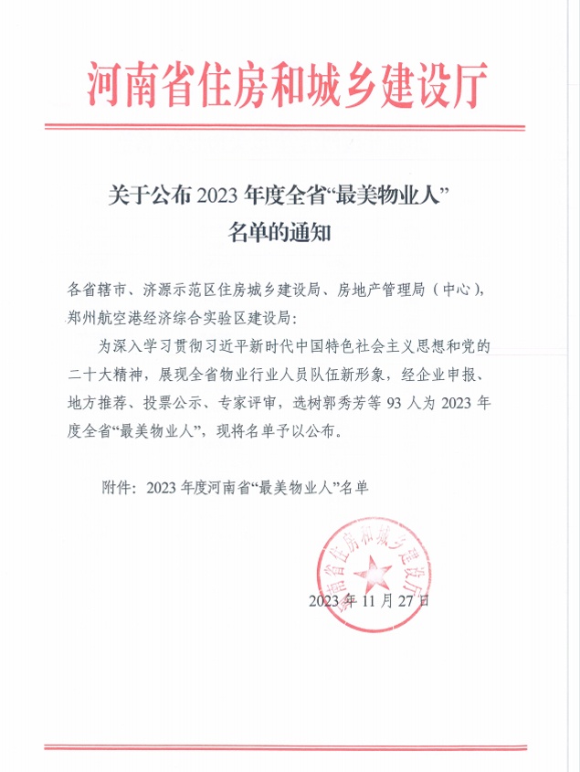 11月27日,河南省住房和城鄉(xiāng)建設(shè)廳發(fā)布了2023年度全省“最美物業(yè)人”名單,經(jīng)過(guò)專家評(píng)審,建業(yè)新生活周口城市公司姚錦超、駐馬店城市公司禹宗超、焦作城市公司孫福生三人入選該榜單。 以服務(wù)贏得尊重,讓團(tuán)隊(duì)獲得價(jià)值 建業(yè)新生活周口城市公司 姚錦超 從2007年加入建業(yè),在16年的磨礪中,姚錦超從貼心管家做起,以扎實(shí)的業(yè)務(wù)知識(shí)和優(yōu)秀的業(yè)務(wù)水平,帶領(lǐng)團(tuán)隊(duì)不斷奮進(jìn)。 在員工的眼里,姚錦超是一名“奉獻(xiàn)型”管理者,他的辦公室里一直備著一張簡(jiǎn)易折疊床,工作忙到深夜時(shí),他便在這里湊合一宿。2018年8月17日,周口市區(qū)突降暴雨,引起城市內(nèi)澇,正在外地的姚錦超立刻輾轉(zhuǎn)10余小時(shí)趕回周口·建業(yè)森林半島小區(qū)。雖然小區(qū)已第一時(shí)間啟動(dòng)應(yīng)急預(yù)案,但由