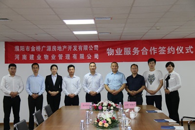5月24日,河南建業(yè)物業(yè)管理有限公司與濮陽(yáng)金橋廣源房地產(chǎn)開發(fā)有限公司物業(yè)顧問(wèn)戰(zhàn)略合作簽約儀式在建業(yè)總部港成功舉行,金橋廣源地產(chǎn)總經(jīng)理史乾亨、副總經(jīng)理張志現(xiàn)、營(yíng)銷總監(jiān)王俊超、行政總監(jiān)馬顏、河南建業(yè)物業(yè)管理有限公司助理總經(jīng)理杜鵬濤出席了本次活動(dòng)。在此之前,4月15日建業(yè)物業(yè)也成功與開封家盟置業(yè)有限公司簽署了物業(yè)顧問(wèn)及案場(chǎng)代管合同。