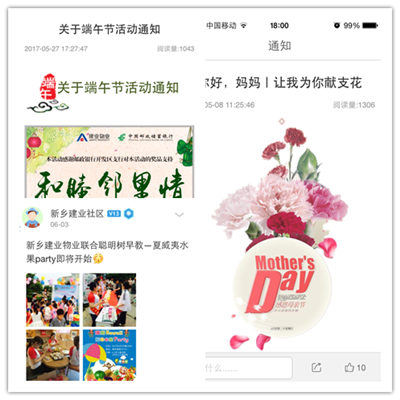 漯河、鄭州、洛陽等分公司將親子運動會、鄰里旅行、消夏音樂節(jié)、藝術(shù)團義演等活動引入社區(qū),倡導(dǎo)業(yè)主以全新理念暢享新型生活方式,感受鄰里共處的曼妙時光,體驗建業(yè)物業(yè)獨具特色的社區(qū)文化。新鄉(xiāng)、焦作等分公司充分利用建業(yè)一家APP、微信等載體,實現(xiàn)線上線下的充分互動,更是贏得了業(yè)主的一致好評,極大的提高了業(yè)主參與度和滿意度。而書法、讀書會、籃球、太極等等社群組織的組建、運營和活躍,亦是本階段的重要成果。