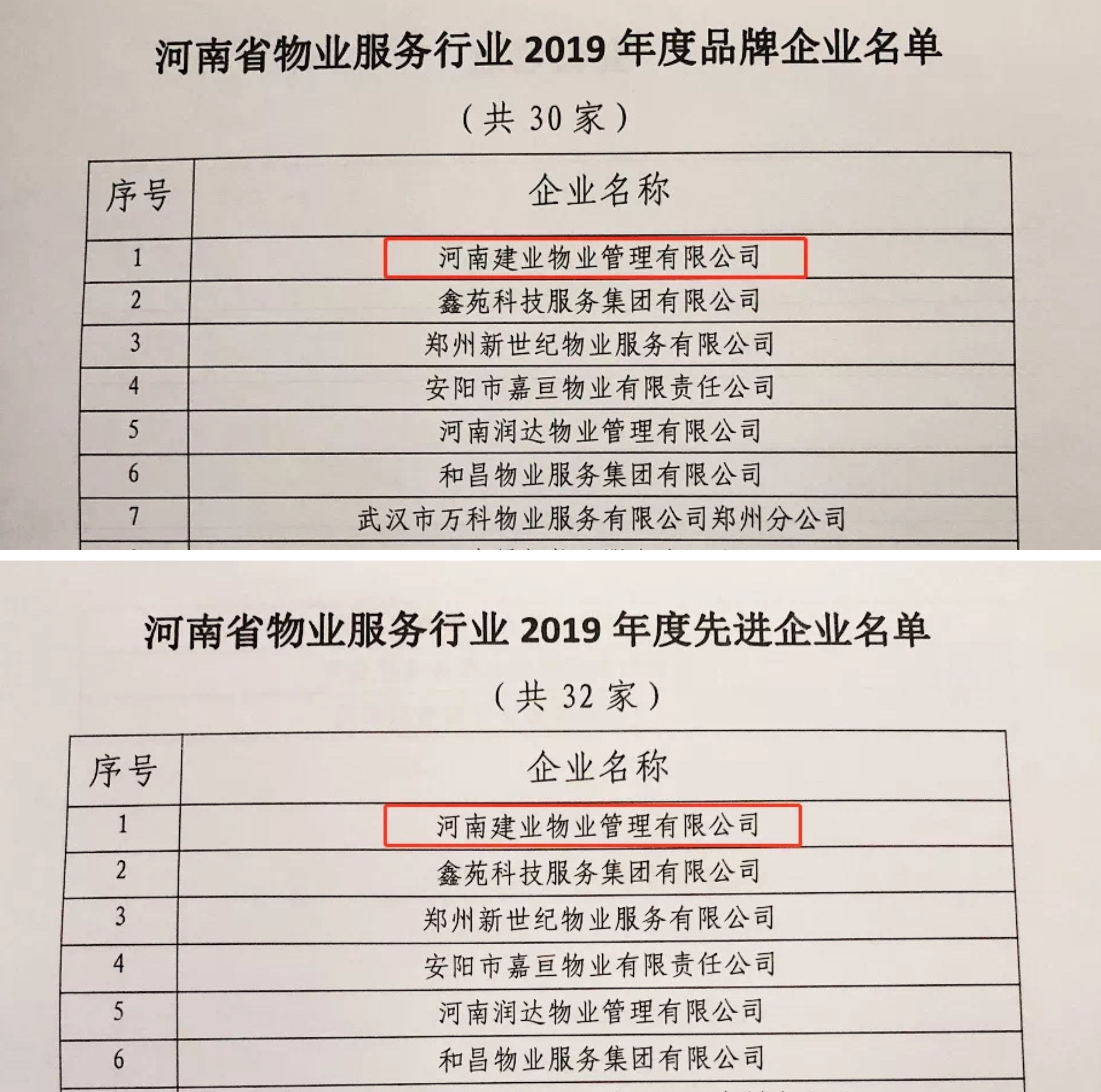 連日來,建業(yè)物業(yè)獲評“扶貧明星企業(yè)”“河南省物業(yè)服務行業(yè)2019年度品牌企業(yè)”“河南省物業(yè)服務行業(yè)2019年度先進企業(yè)”等多項榮譽,建業(yè)物業(yè)三位優(yōu)秀員工獲得“河南省出彩物業(yè)人”榮譽稱號,佳音頻傳,每一位建業(yè)物業(yè)人都感到驕傲與榮光。