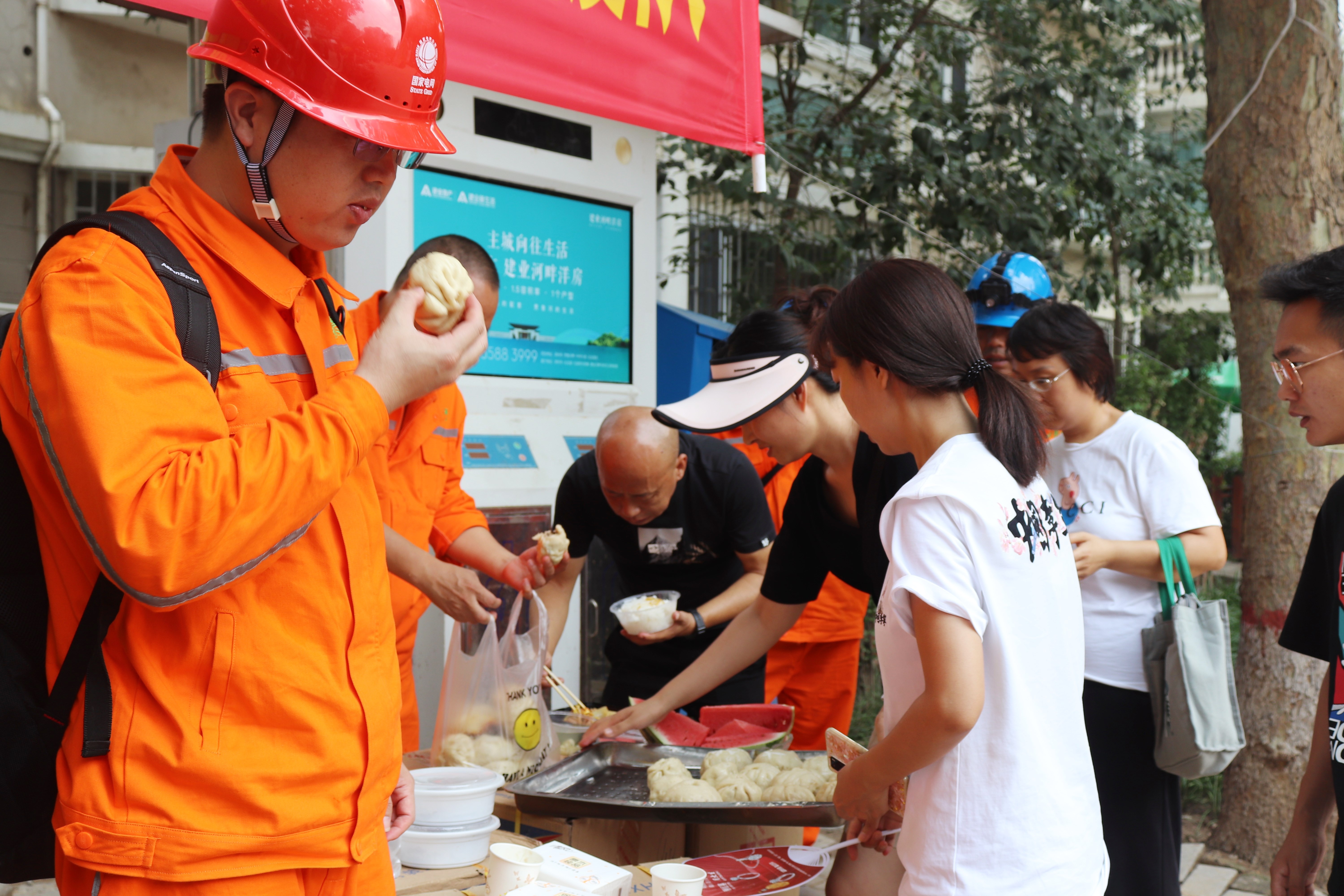 一名從江西贛州奔赴城市花園的國網(wǎng)救援人員說:“來到鄭州后,我每天都被感動著,總是想起魏巍的那篇《誰是最可愛的人》?!闭f完這句話,他有些哽咽,指著眼前的那些人繼續(xù)說:“這個小區(qū)受災(zāi)很嚴重,但是小區(qū)的物業(yè)和業(yè)主們卻很勇敢。物業(yè)還請來他們建業(yè)大食堂流動餐車來做飯,讓受災(zāi)群眾和救援人員無后顧之憂,不僅如此,他們也很專業(yè),救援隊的需求,只要一提出他們就能立刻解決,其實他們也一直沒休息……”