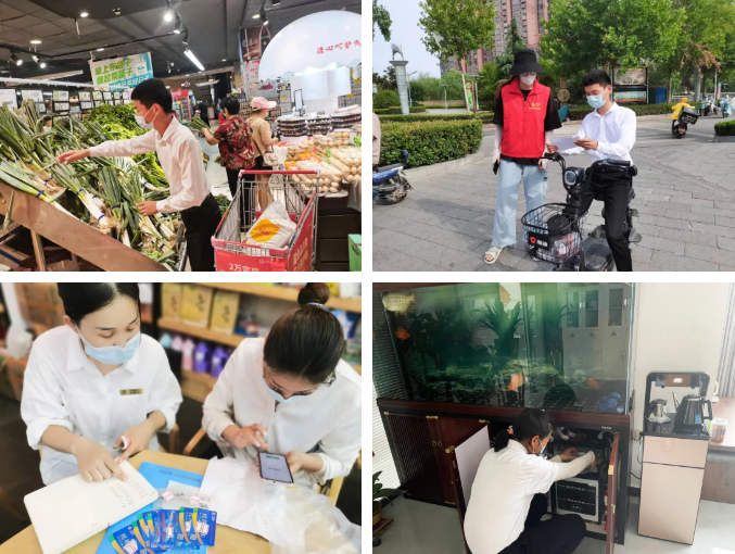 駐馬店·建業(yè)城貼心管家邢雙號得知有一名業(yè)主被封控在另外一個住處,家里沒有必備的生活物質(zhì),在和小區(qū)經(jīng)理請示過后,他和維修工王海燕一同幫業(yè)主外出采購。