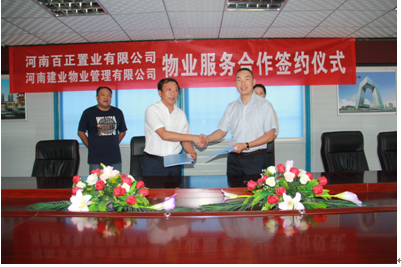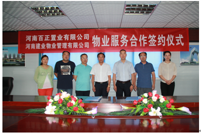 2016年6月29日河南建業(yè)物業(yè)管理有限公司與河南百正置業(yè)有限公司成功簽署物業(yè)顧問(wèn)服務(wù)戰(zhàn)略合作協(xié)議。