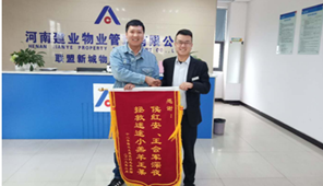 六月,艷陽如火,蟬鳴如潮。建業(yè)物業(yè)人滿懷如火的熱情,用服務(wù)為業(yè)主送來絲絲舒暢。六月份全省在管小區(qū)涌現(xiàn)出好人好事共計(jì)284例,其中收到錦旗65面,表揚(yáng)信127封,來電感謝及其他92例。 鏡頭一: 6月2日9時許,平頂山·十八城貼心管家王明濤接到7號樓尹女士的緊急電話,稱自己的丈夫腿受傷已無法動彈,等不及救護(hù)車過來了。王明濤和禮兵中隊(duì)長白洋洋、巡邏禮兵安東火速趕到業(yè)主家中,一邊保護(hù)王先生腿部不再受到二度傷害,一邊將王先生背下樓并送往醫(yī)院。因就診及時,病人病情得到及時控制,并無大礙。 次日,尹女士特地讓孩子代表夫婦二人送來一面印有“智慧果敢加神速,為業(yè)主排憂解難”字樣的錦旗,以此表達(dá)對建業(yè)物業(yè)的感激之情。 鏡頭二